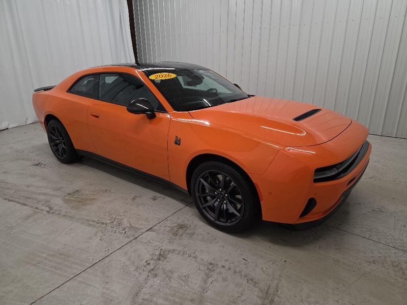 Header Orange Clearcoat 2026 Dodge Charger R/T Scat Pack AWD 8-Speed Automatic HO AWD, Black Artificial Leather.